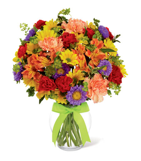 The Light and Lovely Bouquet is presented in a clear glass vase with a lovely lime green ribbon at the neck, adding to its beauty. You can order this bouquet in advance for later delivery or take advantage of our same-day delivery service. Our local florists in Canada and the U.S. will hand-select fresh flowers and deliver them to the specified address on the chosen date.